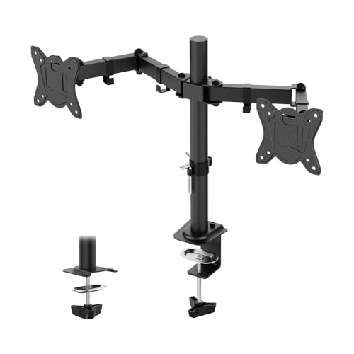 RICOO Dual Monitor Desktop Mount TS7311 Adjustable mounting for 2 flat screens with 13-27 inch with max VESA-Norm 100x100 free-standing double arm bracket PC screen stand in Black
