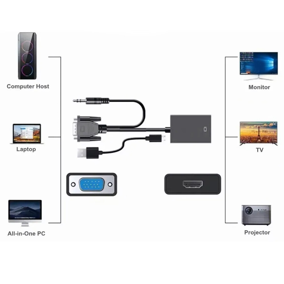 VGA To HDMI Adapter Converter Full HD 1080P Audio Video for PC Laptop to TV HDTV