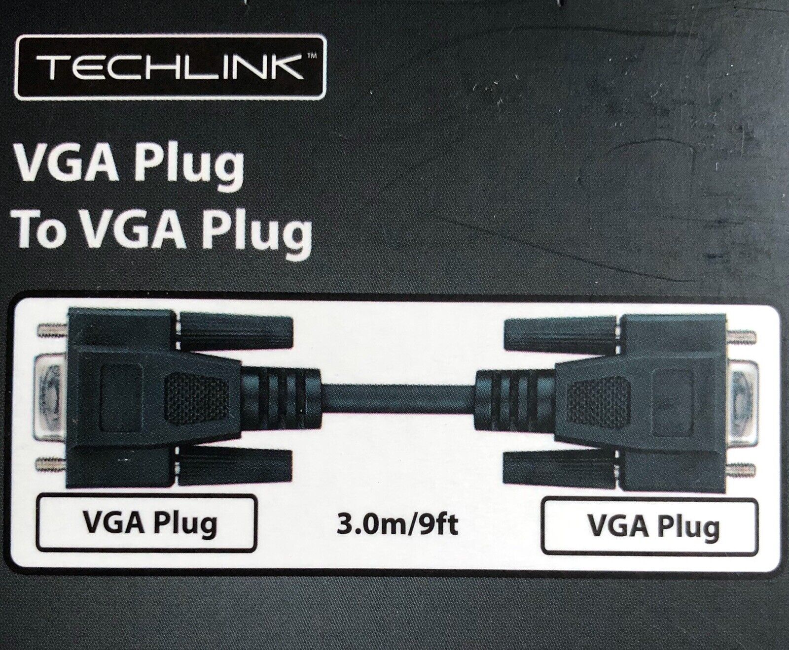 VGA Plug to VGA Plug Monitor Lead 3m 9ft Black Techlink Computer Office 103703