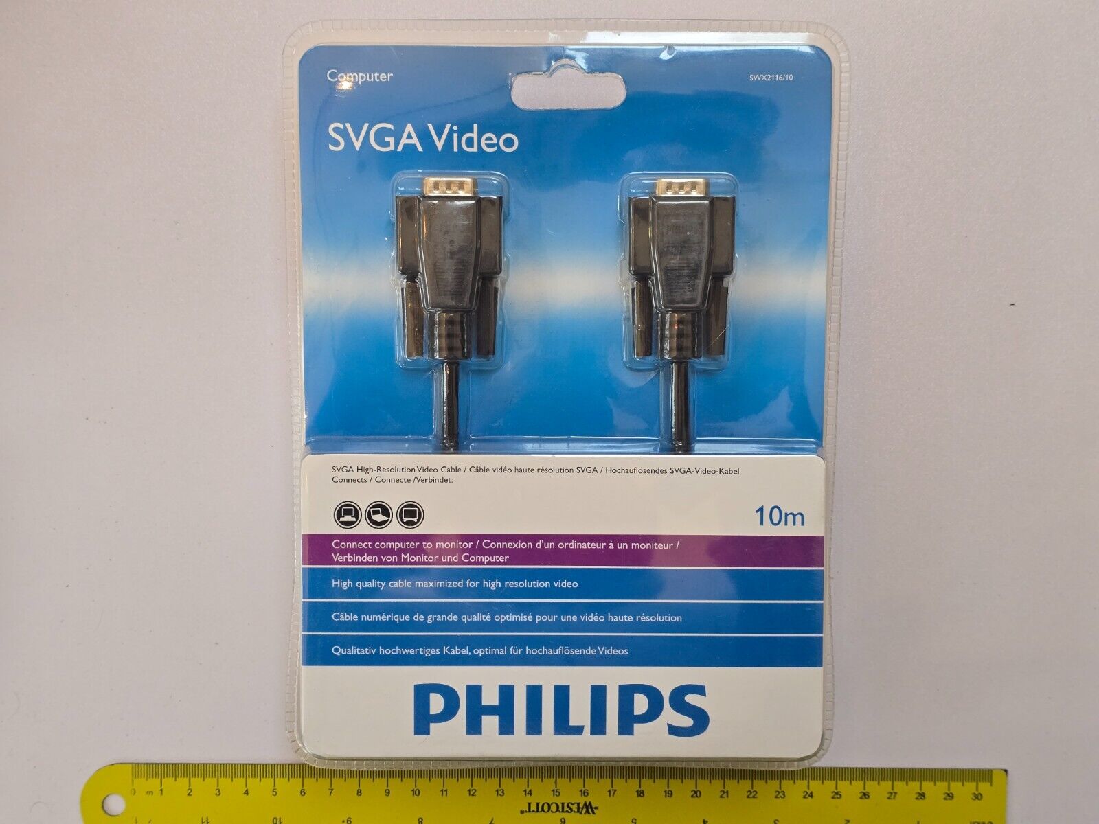 10m VGA SVGA MONITOR LEAD CABLE BRAND NEW SEALED Philips 15 pin Male - Male 33ft