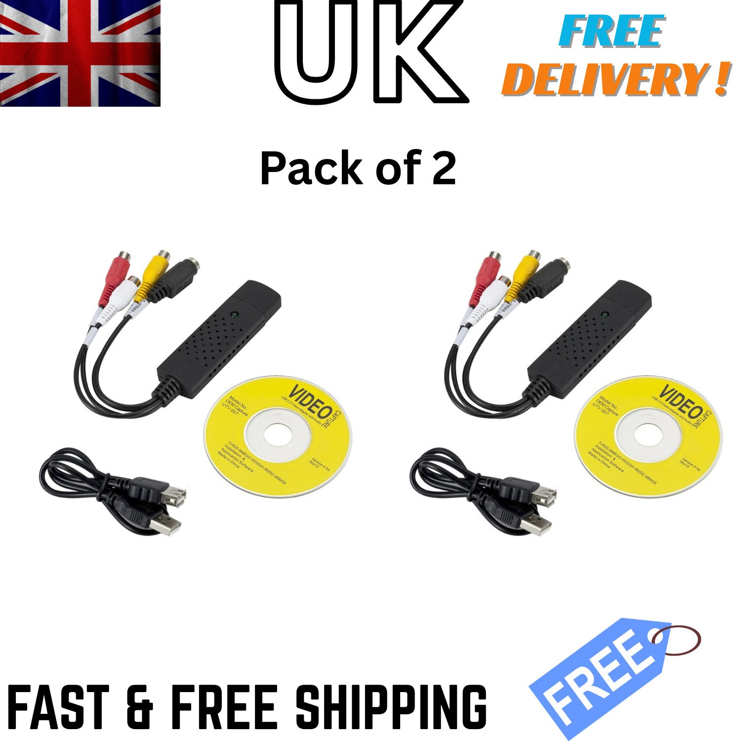 Uk Usb 2.0 Vhs Tape to Pc Dvd Converter Video & Audio Capture adapter(Pack of 2)