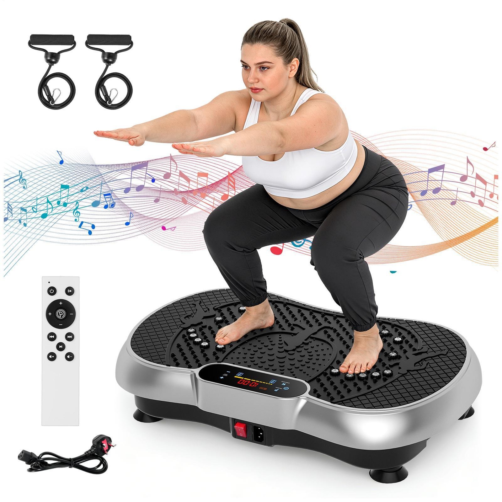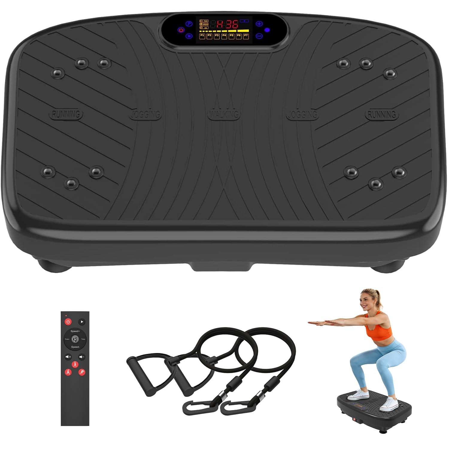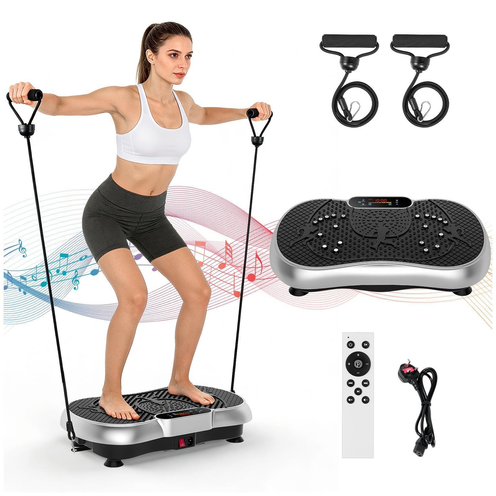 Vibration Plate Exercise Machine with 9 Programs, 200 Intensity Levels, Built-in Bluetooth Speaker, Remote Control, Resistance Bands & Ropes, Vibrating Plate for Weight Loss & Lymphatic Drainage