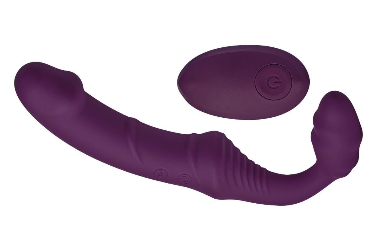 Strap-On-Me Rechargeable Remote Control Vibrating Strapless Strap-On Purple M