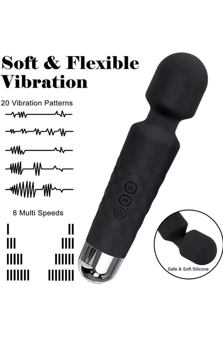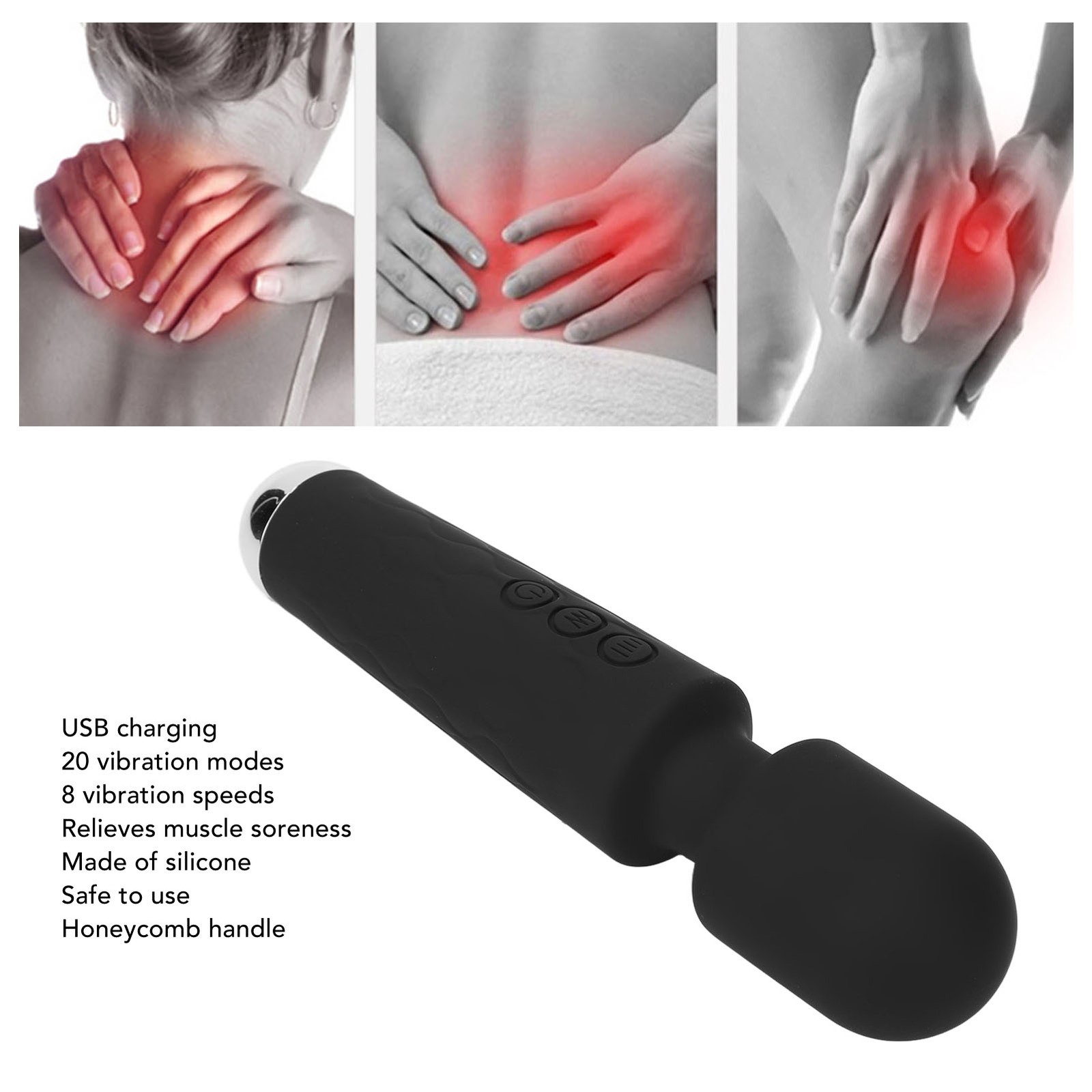 Handheld Mini Vibrating Wand USB Charging 20 Mode 8 Speeds Reduce Soreness Black