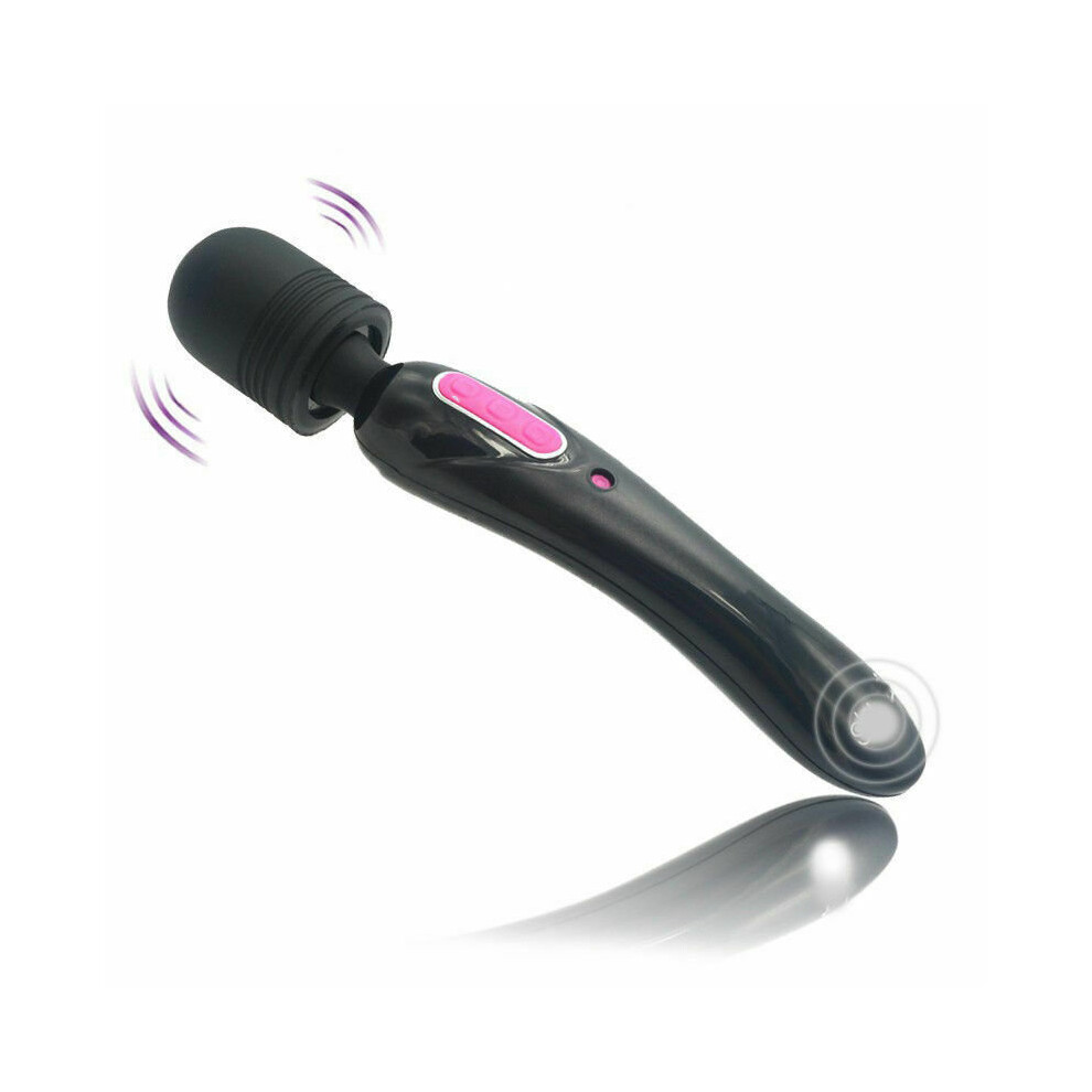 (Black) Magic Wand Vibrating Full Body Massager 20 Speeds USB Rechargeable Waterproof UK