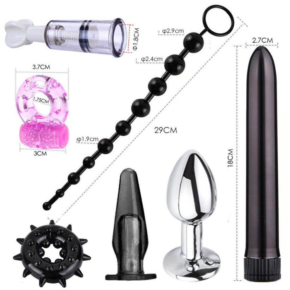 BDSM Bondage Set Anal Beads Butt Plug Vibrating Wand Erotic Toys
