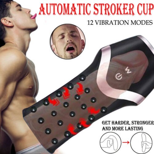 Black Pocket Pussy Male Masturbator 12 Vibration Modes WaterproofUSBRechargeable