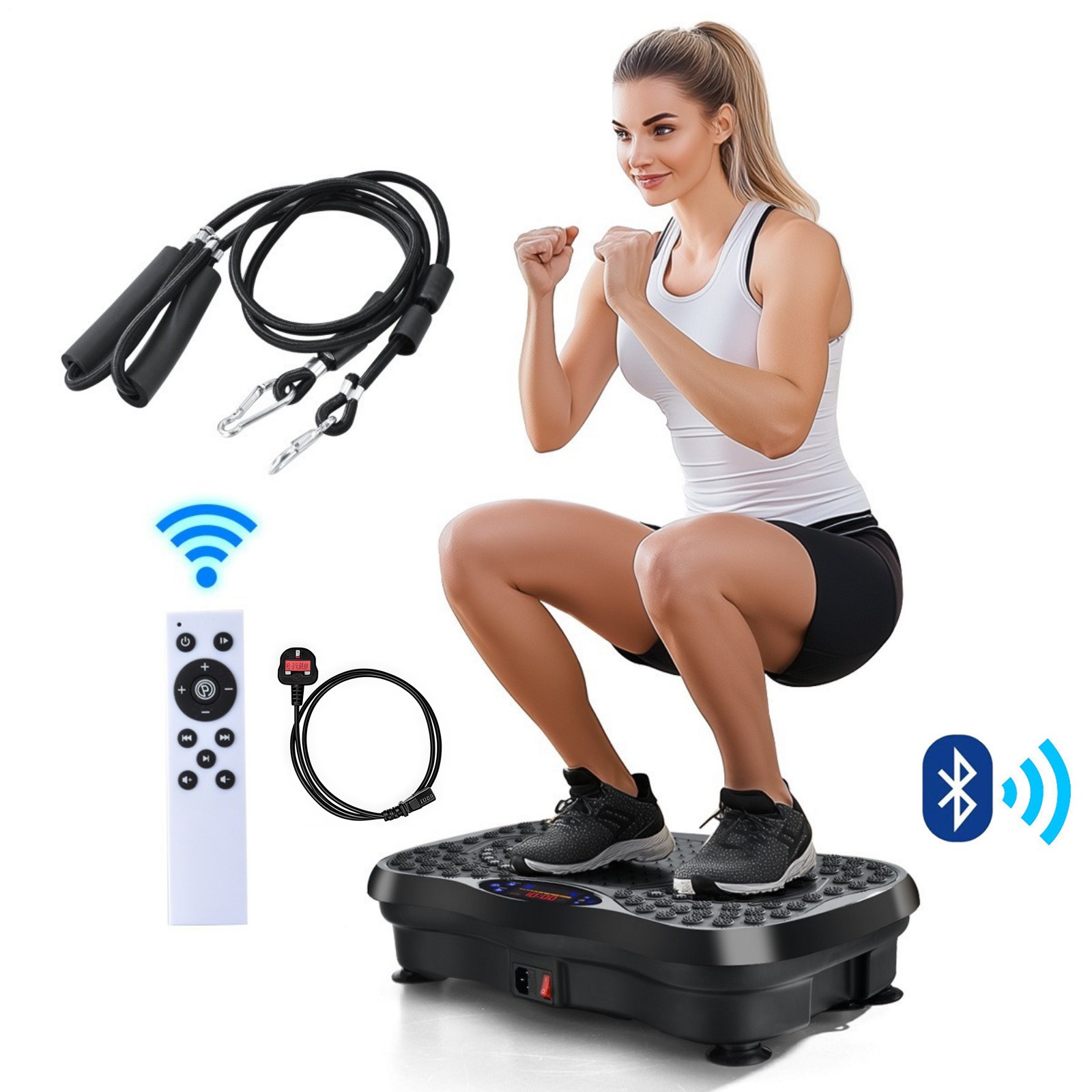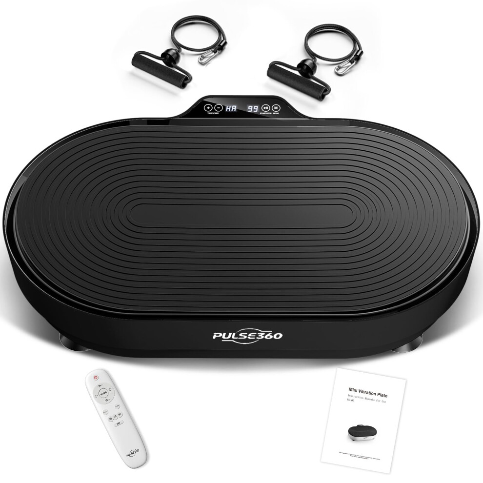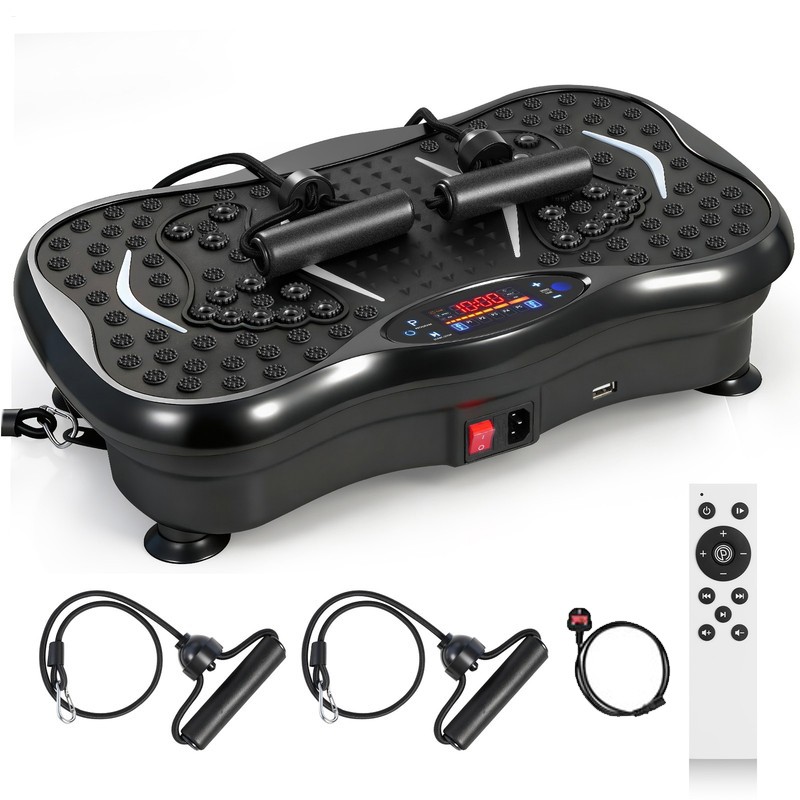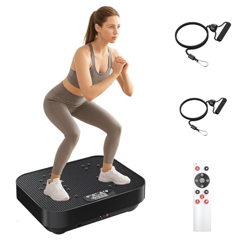 TOTEBOX Vibration Plate Platform with Resistance Bands, Power Vibration Fitness Trainers Bluetooth for Whole Body Workout 99 Levels Black w/ Remote