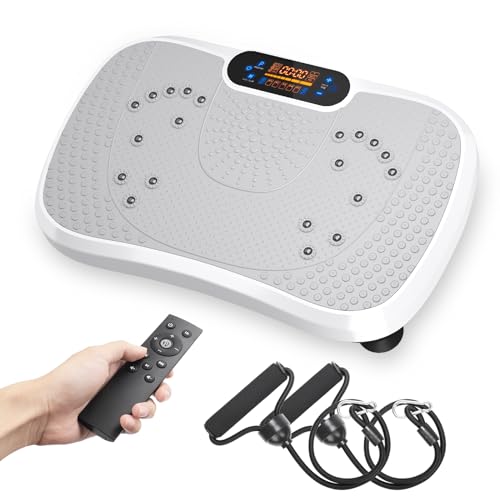 FEIERDUN Vibration Plate, Whole Body Vibration Plate Exercise Machine for Lymphatic Drainage, Power Plate Vibration Plate w/ 2 Resistance Bands for Wellness and Fitness