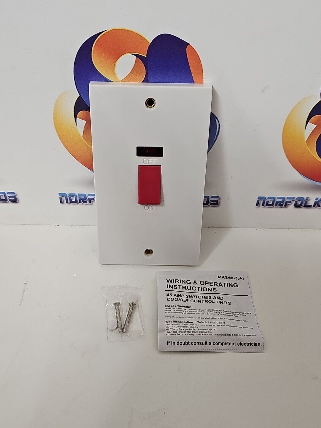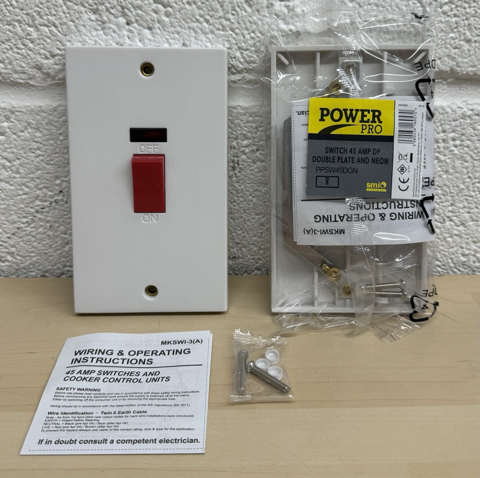 SMJ Power Pro 45Amp Double Pole Cooker Switch Double Plate 2G Neon 250V White M