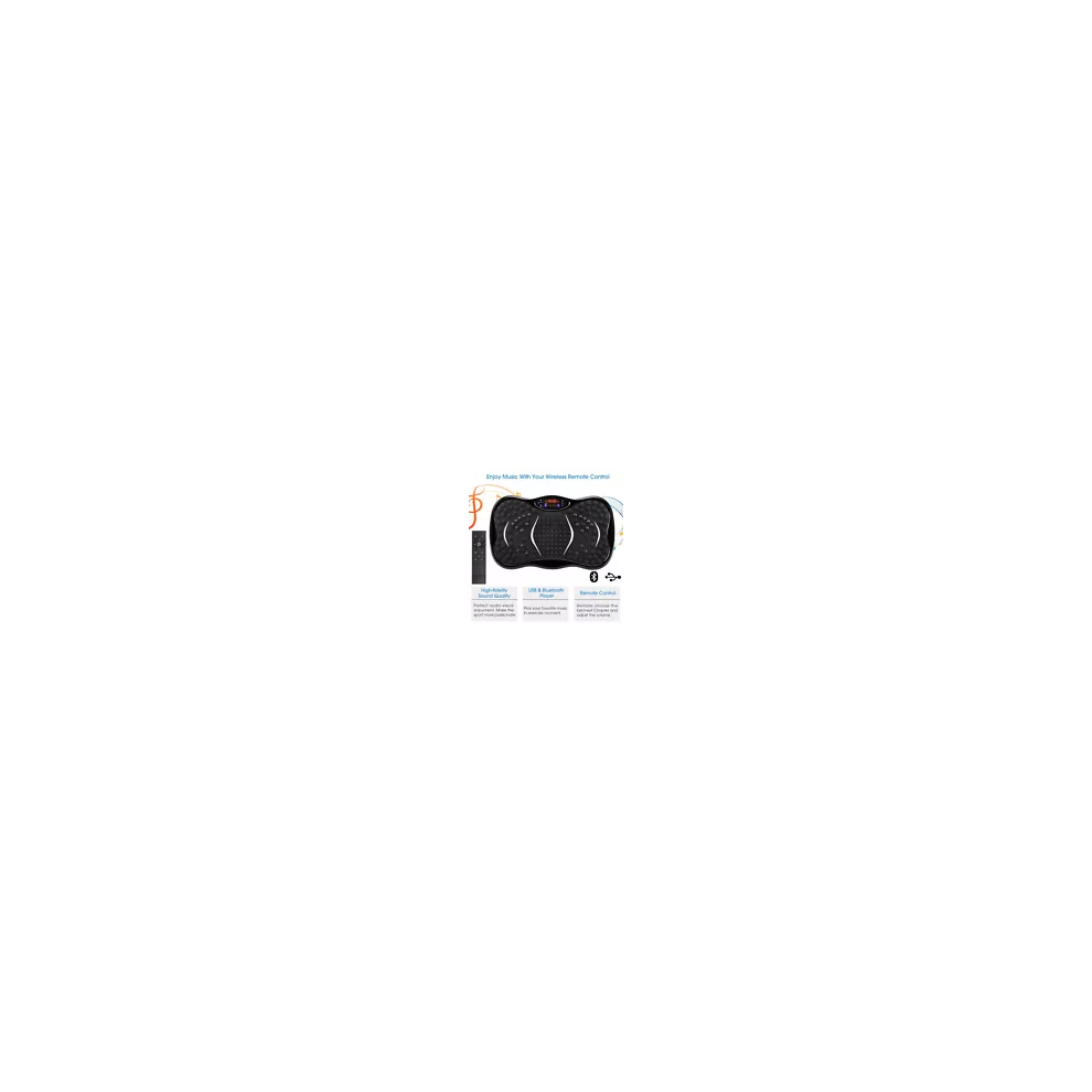 TOTEBOX Vibration Plate Exercise Machine Black, Home Gym Whloe Body Fitness Trainers, 120 Speeds Vibration Power Platform with Resistance Bands, Bluetooth Speaker and Remote