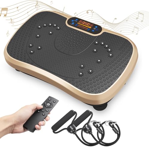 Dripex Vibration Plate Exercise Machine, Whole Body Workout Fitness Vibration Plate, Vibration Power Plate with Resistance Bands,Slim Vibration Platform for Home Training & Shaping,99 Levels-Gold