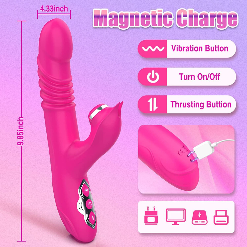 (Pink) Womens Rabbit Vibrators Sex Toy Oral Tongue Sucking G-Spot Clitoral Stimulator