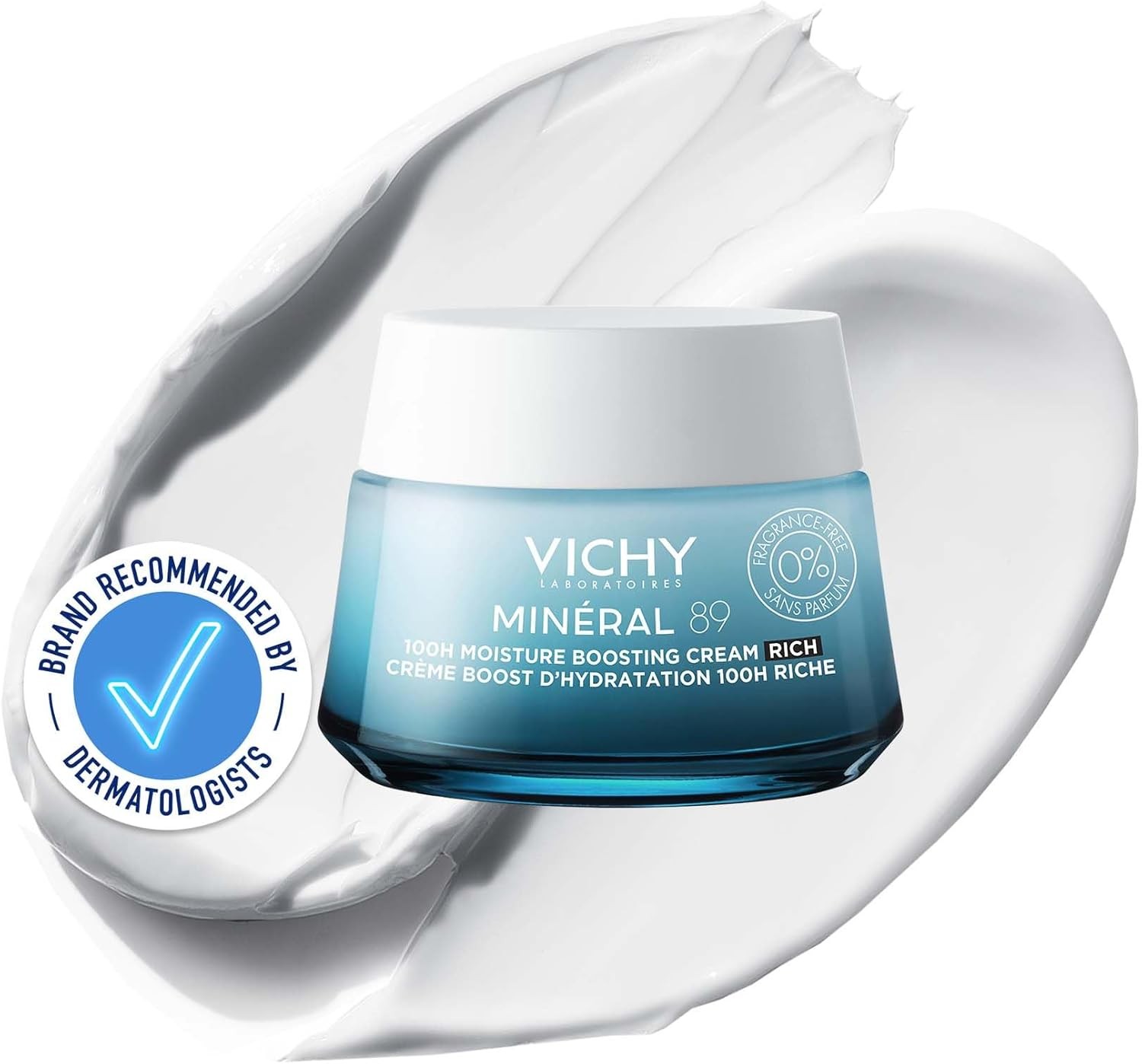 Vichy Minéral 89 100H Moisture Boosting Rich Cream with Hyaluronic Acid for Dry