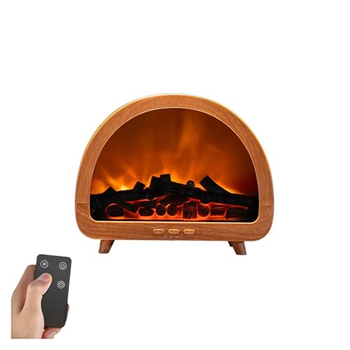 Fireplace Flame Air Aromatherapy Diffuser with Remote, 7-Color Cool Mist Humidifier & Essential Oil Diffuser, Timer & Auto-off for Home, Bedroom(Dark Wood Grain)