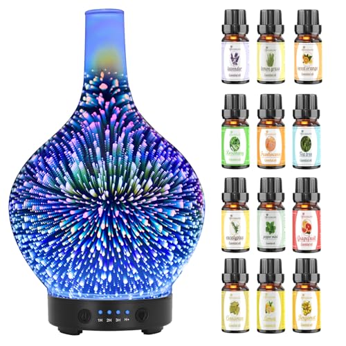 Essential Oil Diffuser 120ml Diffusers for Home 3D Glass Essential Oil Diffusers Cool Mist Aroma Diffuser, Whisper Quiet Humidifier, Waterless Auto Shut-Off for Home Office Yoga SPA