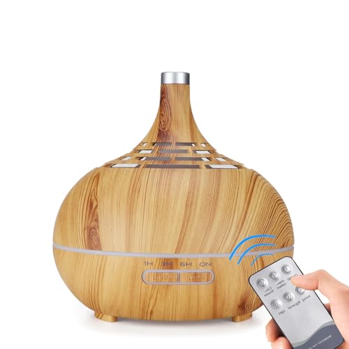 ARZASGO Essential Oil Diffusers, 400ml Ultrasonic Cool Mist Aromatherapy Diffuser with Remote Control Timer and 7 Colourful LED Lights Air Humidifier for Home, Bedroom, Office (Light Brown)