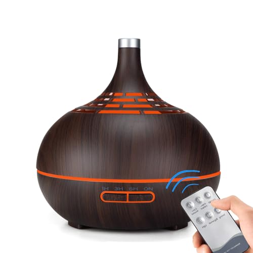 ARZASGO Essential Oil Diffusers, 400ml Ultrasonic Cool Mist Aromatherapy Diffuser with Remote Control Timer and 7 Colourful LED Lights Air Humidifier for Home, Bedroom, Office (Dark Brown)