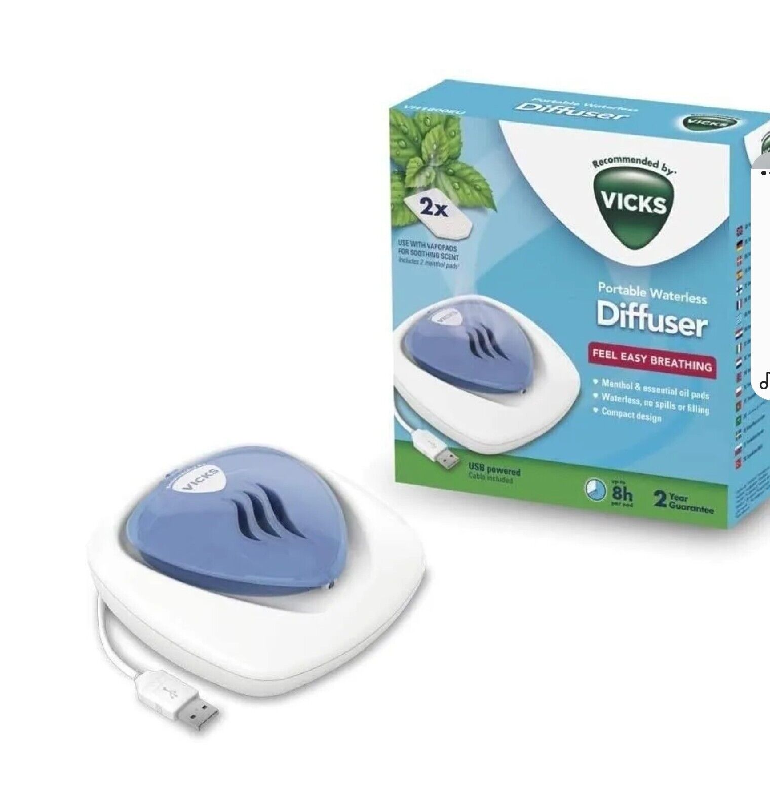 Vicks VH1800 Comforting Vapours USB Waterless Diffuser 2 Scent Pads Breathe Easy