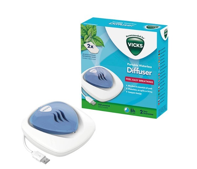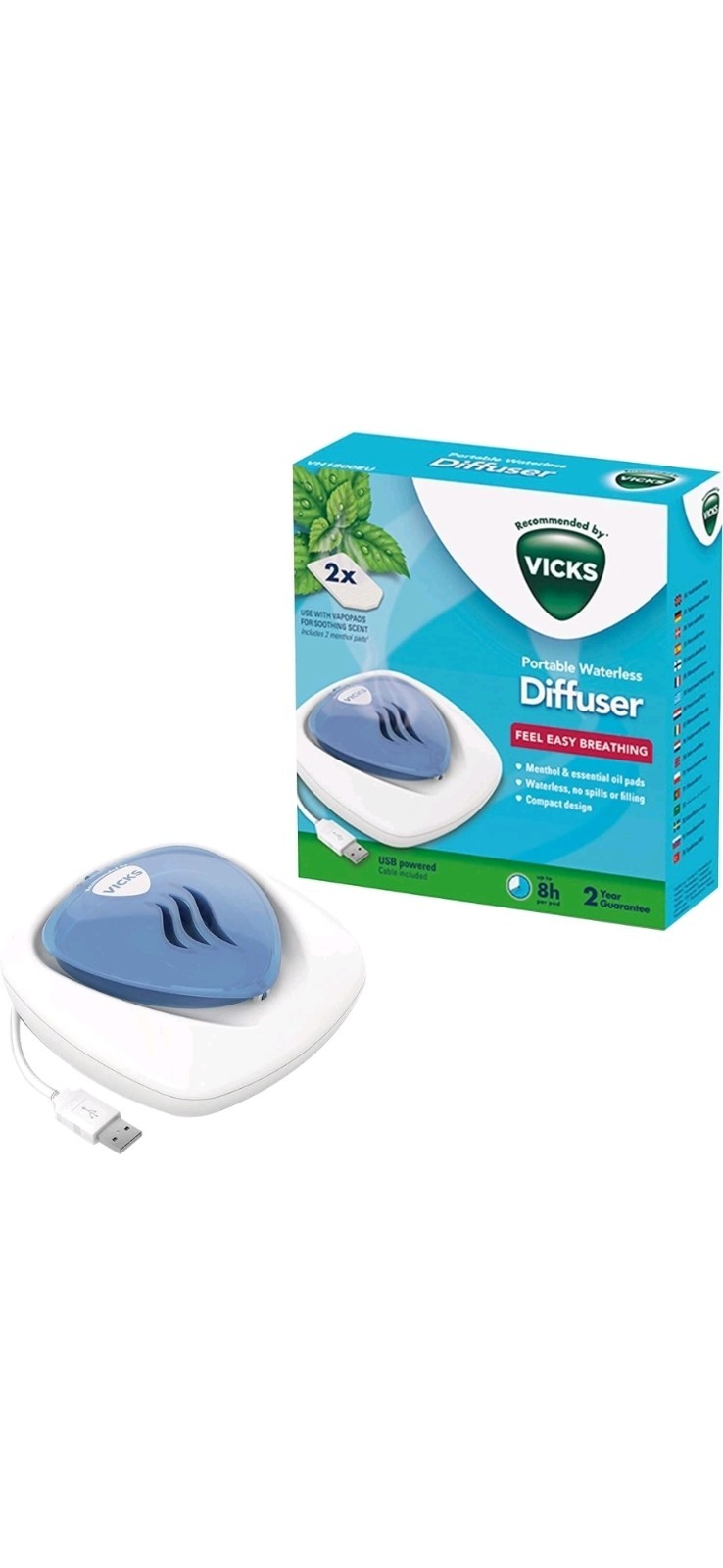 Vicks Portable Waterless Diffuser - USB plug-in - Essential oil pads Included