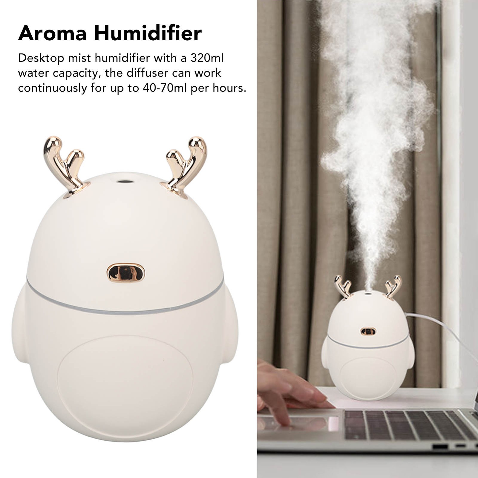 Desktop Humidifier, 300ml Capacity, Mini Portable Humidifier, Diffuser, USB Power Supply, Humidifier with Cool Mist, Auto