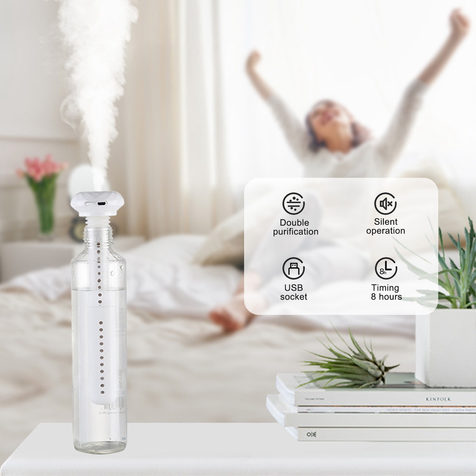 Desktop Humidifier, 300 ml Capacity, Portable Mini Humidifier, Diffuser, USB Power Supply, Humidifier, Humidifier with Cool Mist, Automatic