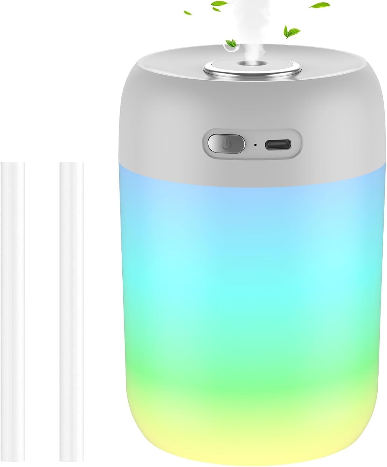 (White)500ml Portable Mini Humidifier Small Cool Mist Humidifier With Colorful