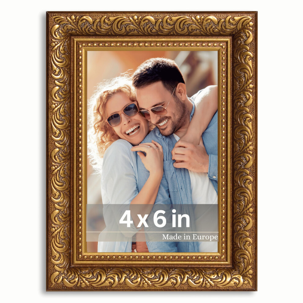 VictoR 4x6 Picture Frame Rubens Brown Gold - Picture Frames 4x6 - with Shutterproof Acrylic Glass - Antique Frames - Brown Frame 4 by 6