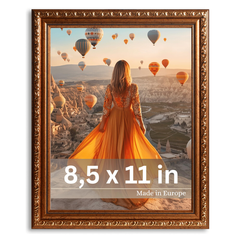 VictoR Picture Frame Chagall 8 5x11 Brown Gold - Vintage Picture Frames with Shutterproof Acrylic Glass - 8 5 x 11 Photo Frame - Brown Picture Frames