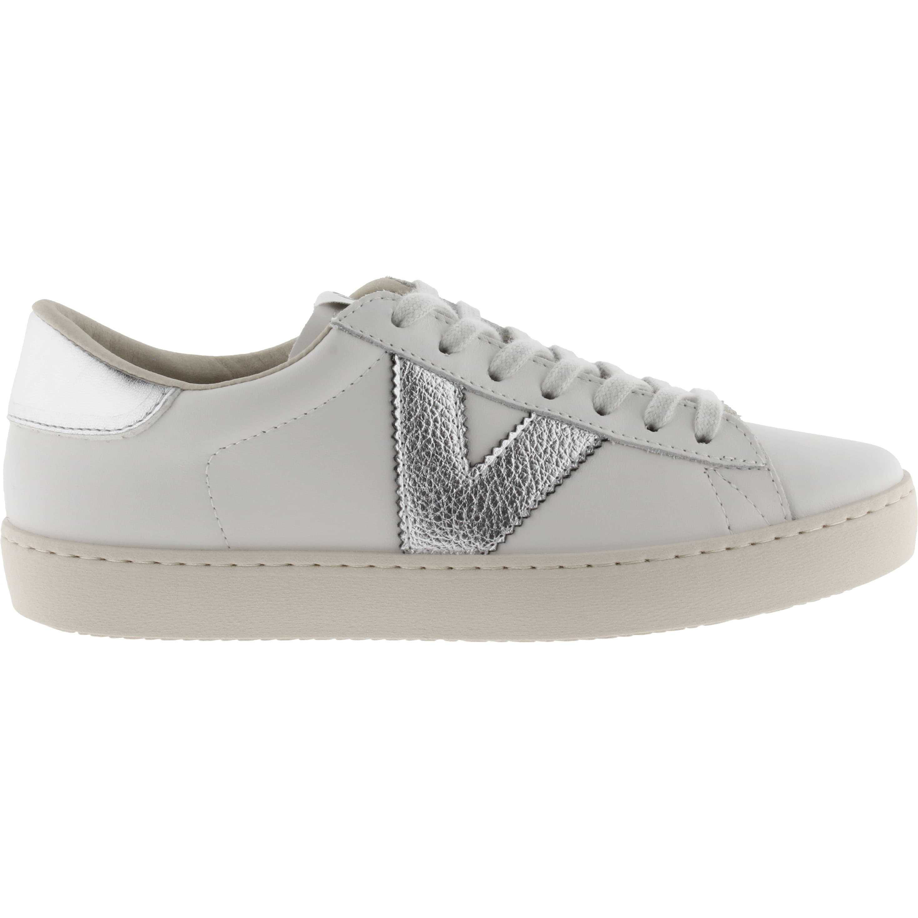 victoria Berlin Ciclista Leather Effect Low Tennis & Cracked Split Leather Pieces & Metallic Logo 1126209 for Women Plata 40