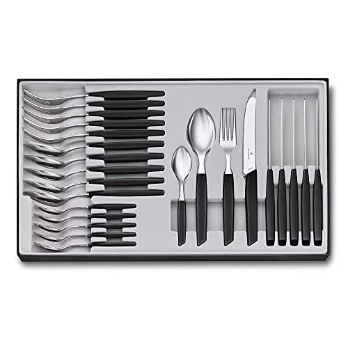 VICTORINOX Swiss Modern Cutlery Set for 6 People, 24 Piece, incl. Sharp Serrated Knives, Plastic Handles, Black