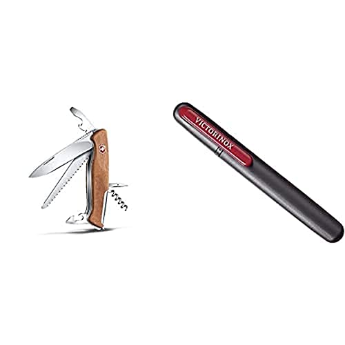 Victorinox Ranger Wood 55 Swiss Army Pocket Knife, Large, Multi Tool, 10 Functions, Locking Blade, Wood & Dual Knife Sharpener, Swiss Made, Portable, Black/Red