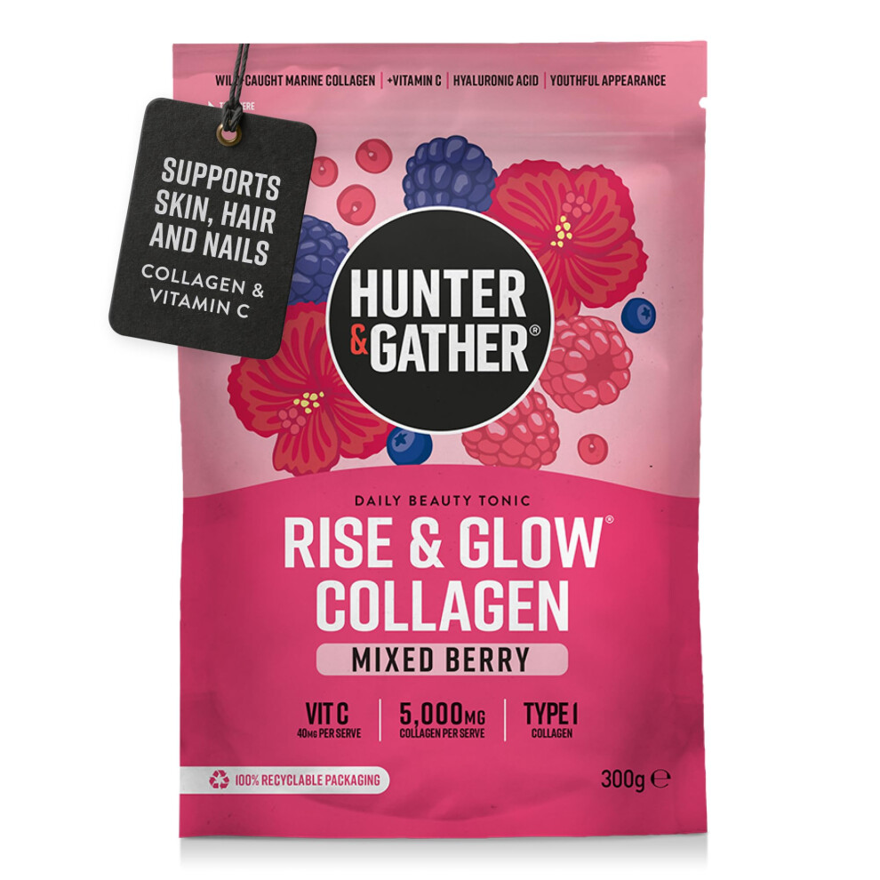 Hunter & Gather Rise & Glow Collagen Daily Beauty Tonic 300g - Mixed Berry - Wild Caught Marine Collagen - Real Food Ingredients with Hyaluronic Acid