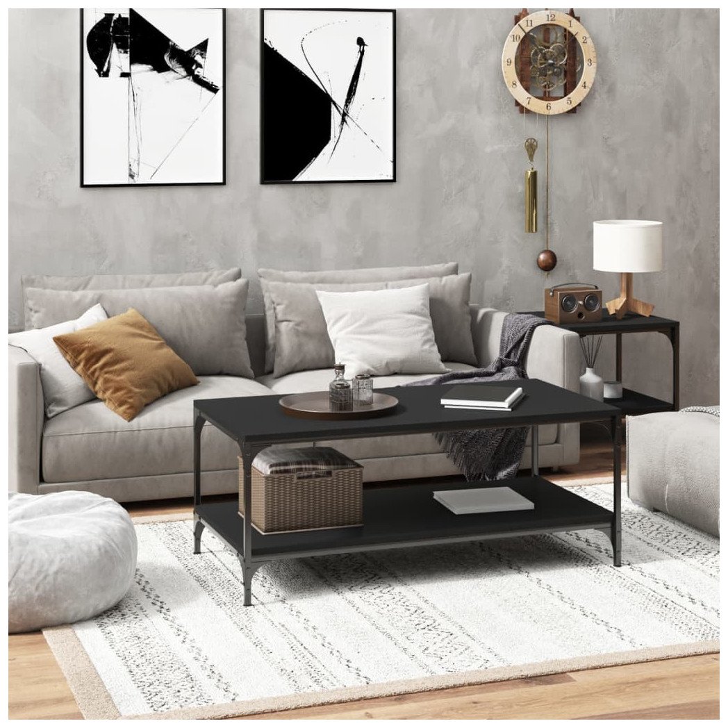 Coffee Table Black 100x50x40 cm Engineered Wood & Steel Industrial Storage Shelf