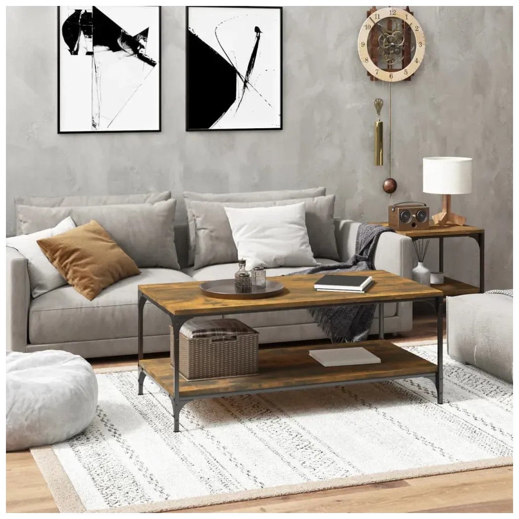Coffee Table Smoked Oak 100x50x40 cm Engineered Wood Metal Industrial DurableTop