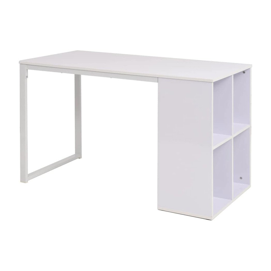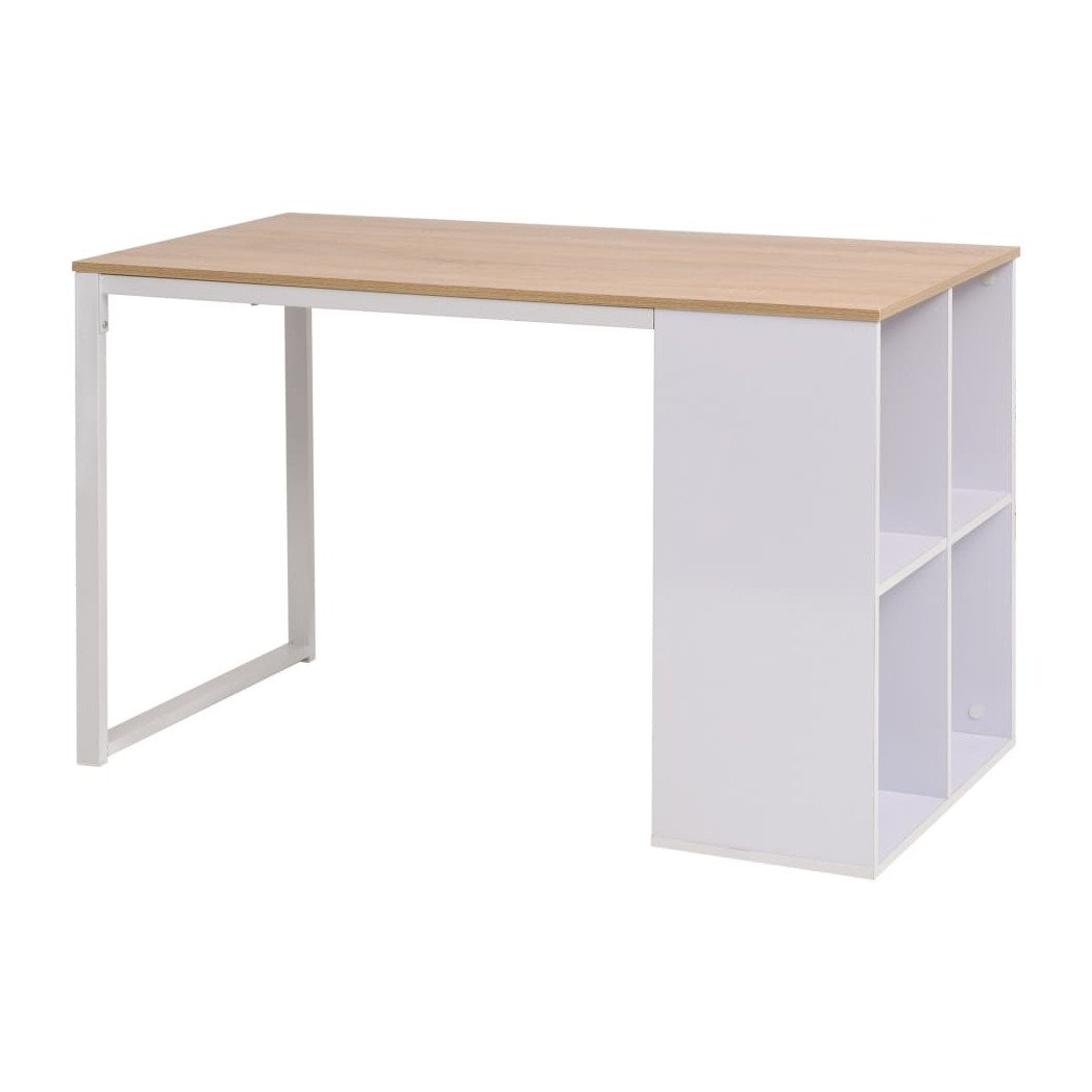Writing Desk Oak & White 120x60x75cm Engineered Wood Top Steel Frame 4Shelf