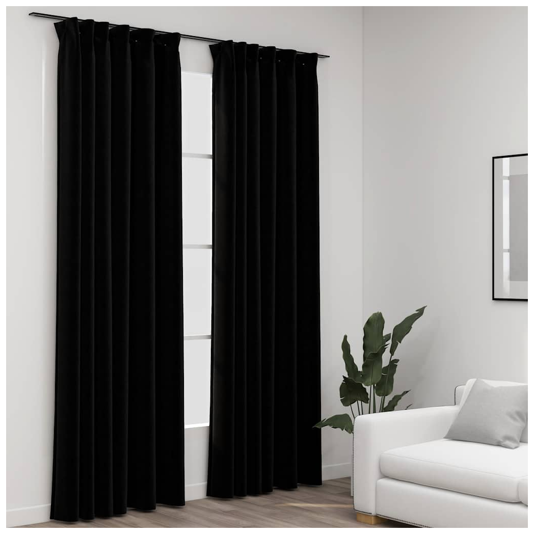 vidaXL Mörkläggningsgardiner 2 st med krokar sammet svart 140x245 cm 134494