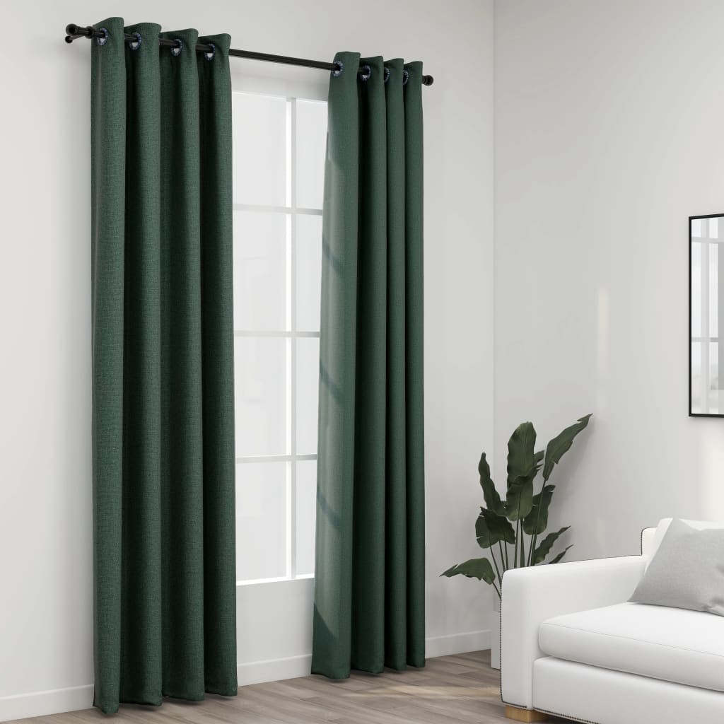vidaXL Linen-Look Blackout Curtains with Grommets 2pcs Green 140x245cm