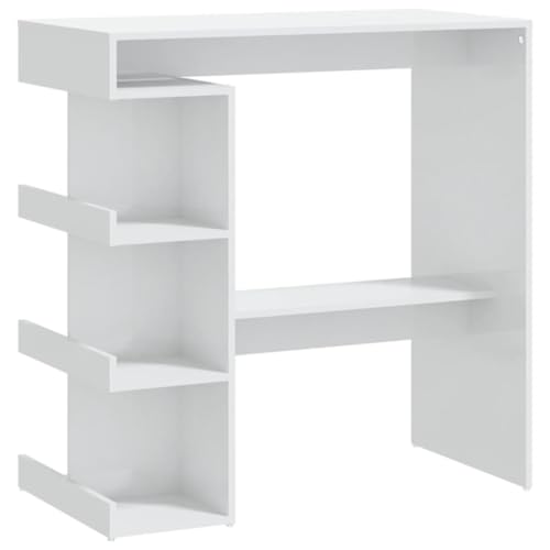 vidaXL Bar Table with Storage Rack Home Living Room Kitchen Dining Room Furniture Bistro Pub Breakfast Bar High Table Desk White Chipboard