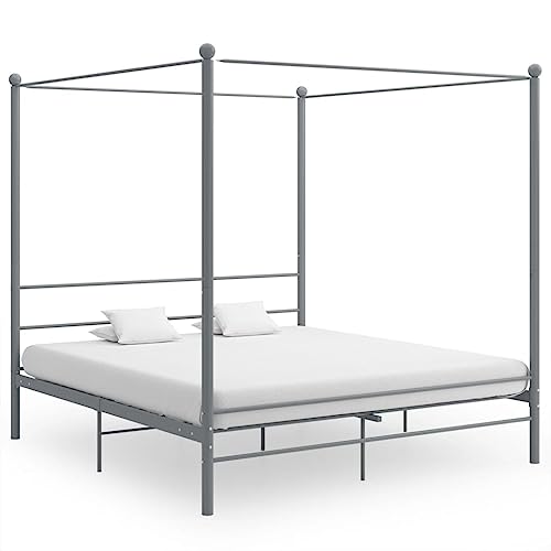 vidaXL Canopy Bed Frame Grey Metal 6FT Super King