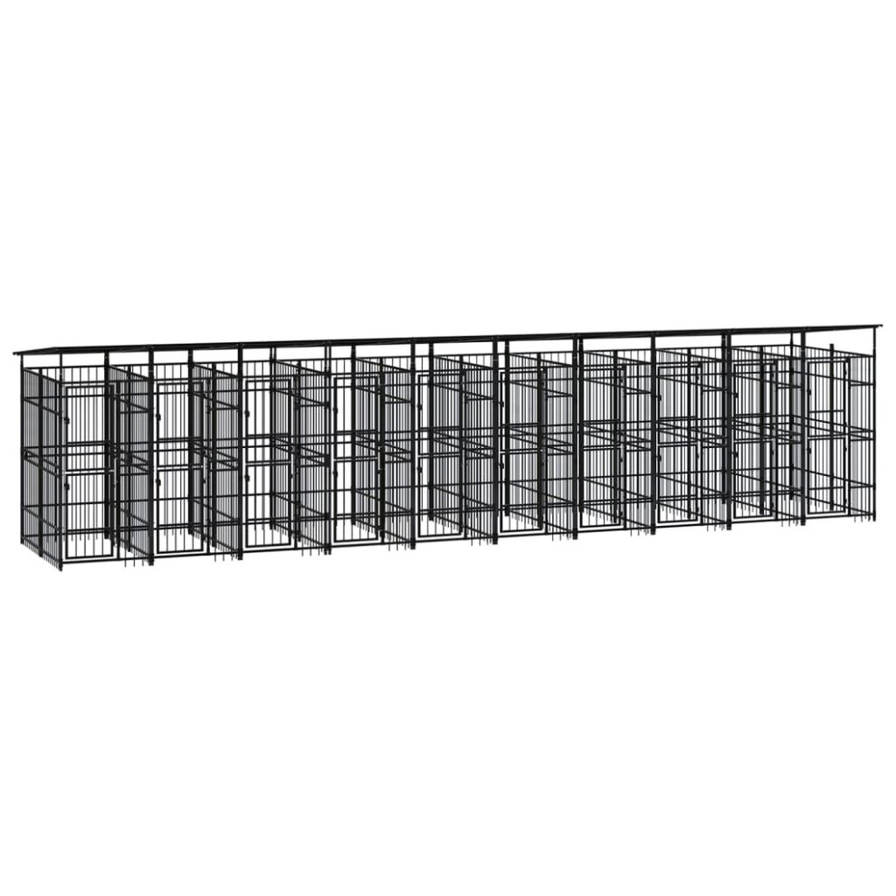 vidaXL Outdoor Dog Kennel with Roof Steel 18.43 m²