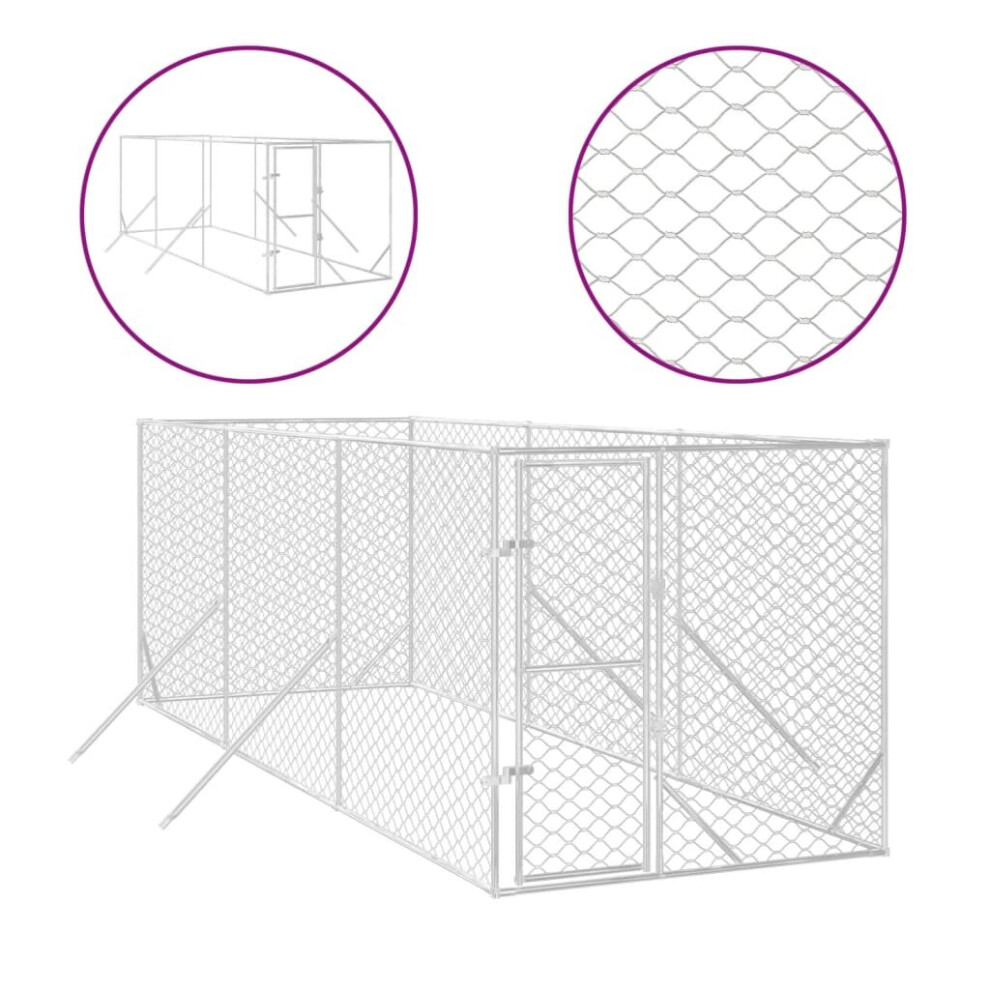 (6 x 2 x 2 m) vidaXL Outdoor Dog Kennel Pet Cage Dog House Pet Crate Silver Galvanised Steel