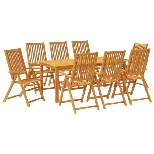 vidaXL Solid Acacia Wood Outdoor Dining Set - Brown, Oil Finish, Foldable Chairs, Ventilated Slat Design, Easy Clean, Patio/Backyard/Garden Furniture, 9-Piece