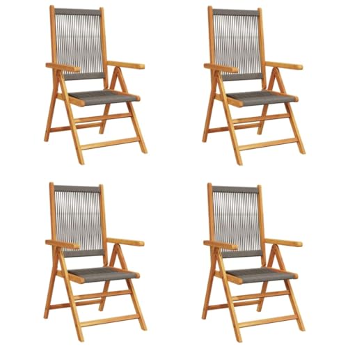 vidaXL Reclining Garden Loungers - 4 pcs Set in Grey, Solid Acacia Wood, Weather-Resistant, Foldable Outdoor Patio Chairs