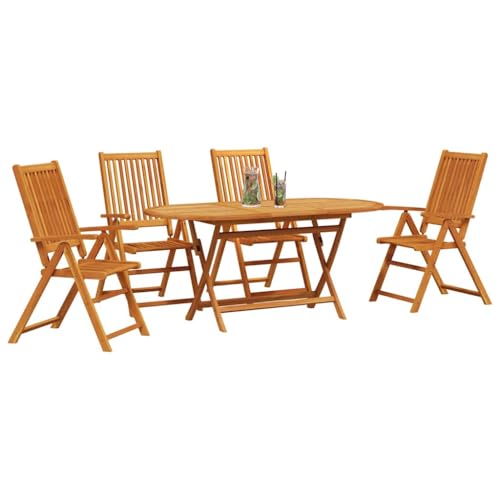 vidaXL Garden Dining Set Folding 5 pcs Leaf pattern Solid acacia wood, Garden and Terrace Dining Set, Oval, Foldable Furniture, Outdoor Table, Chairs for Summer, Patio