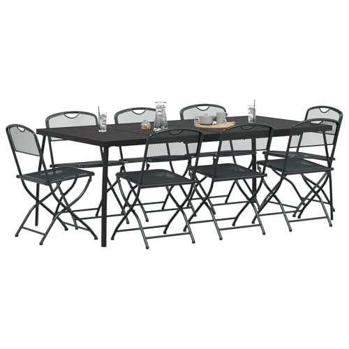 vidaXL Outdoor Furniture Set Folding 9 pcs Anthracite Iron and Steel, Garden and Terrace, Modern Outdoor Furniture Set, Foldable, Weather Resistant, Mesh Tabletop, Anthracite, Compact Design