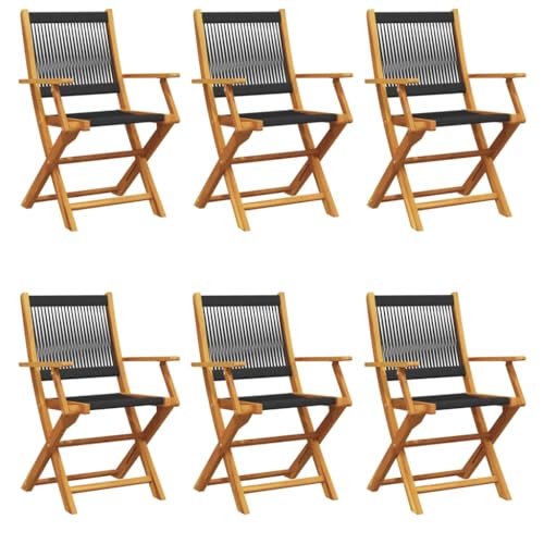 vidaXL Folding Garden Chairs 6 pcs - Black Solid Acacia Wood, Foldable Outdoor Seating, 54 x 57 x 91 cm, Weather-Resistant Patio Furniture for Garden, Balcony, Deck