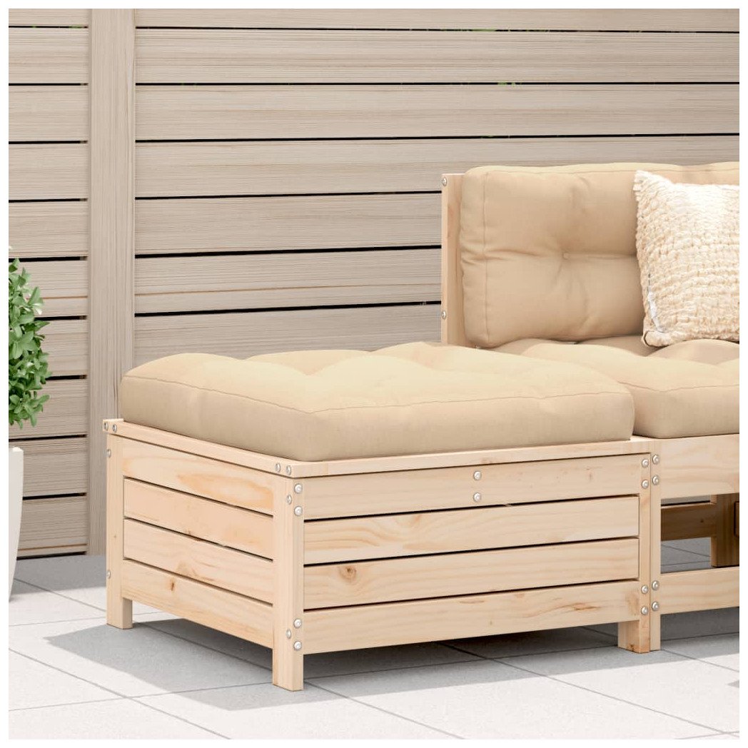 Garden footstool solid pine 69x62x70.5cm beige cushion foldable side table patio