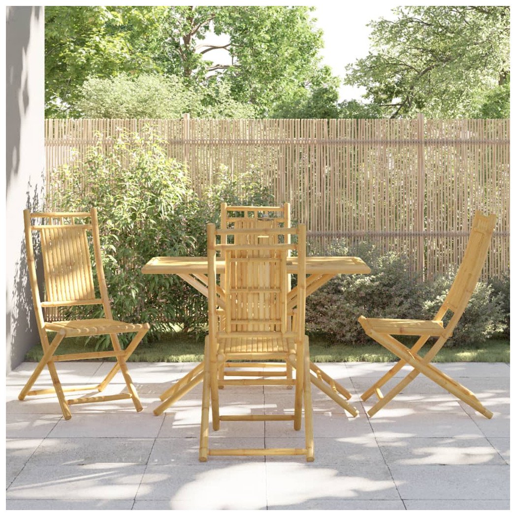 Garden Dining Set 5pc Black Bamboo Foldable Table Chairs 110x55x75cm Outdoor