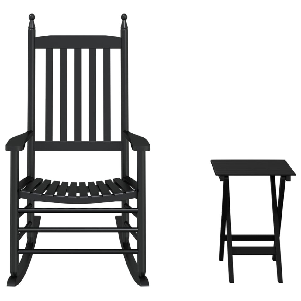 vidaXL Rocking Chair with Foldable Table Garden Chair Black Solid Wood Poplar